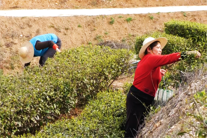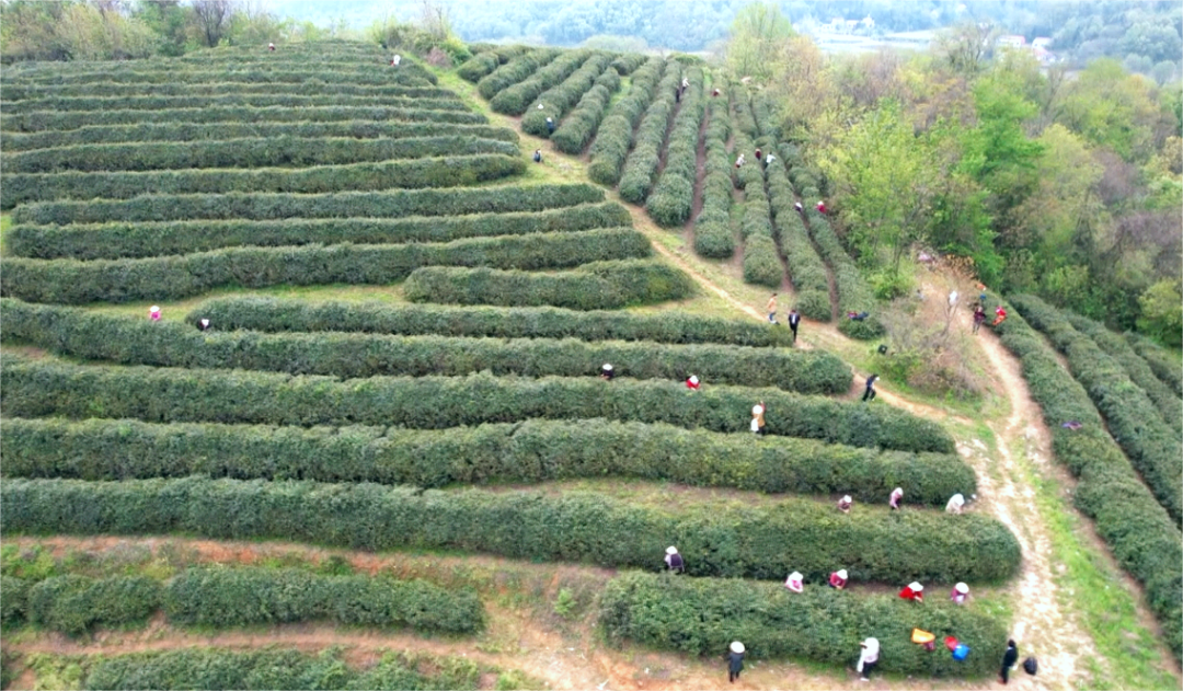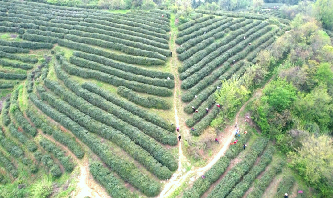 茶农们穿梭于茶园,