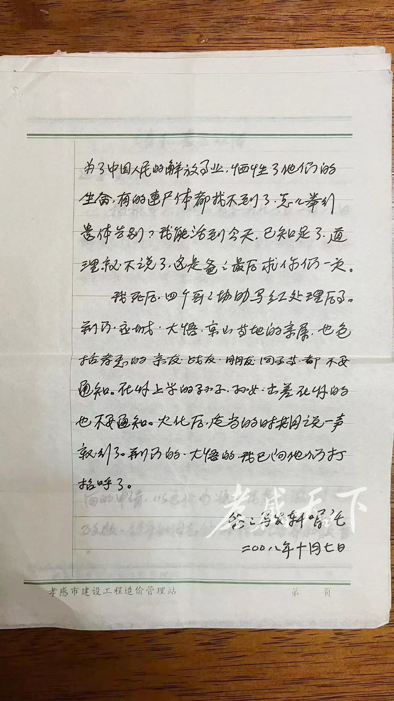 “我死后,你们兄妹五人务必严格遵照爸爸‘十不’(不发讣告、不举行遗体告别……)要求办事。我是认真的,一个共产党员,必须响应党的号召,执行党的决议……”生命的最后时刻,这位历经烽火硝烟的老兵,再次重申丧事从简,完成了他人生最后一次“冲锋”。